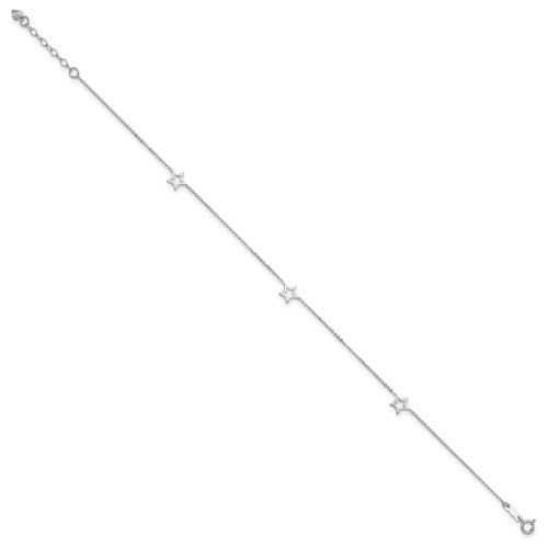 14K White Gold Open Star 3-Station Anklet Plus Heart Dangle Extender 9in