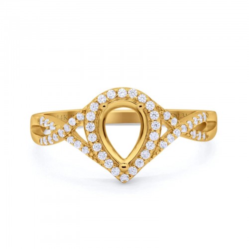 14K Yellow Gold 0.31ct Teardrop Pear Infinity Round 11mm G SI Semi Mount Diamond Engagement Wedding Ring Size 6.5