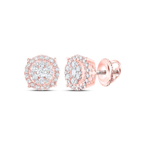 14K Yellow Gold 14Kt Yellow Gold Womens Round Diamond Halo Cluster Earrings 3/8 Cttw 1.53 Gram 14K