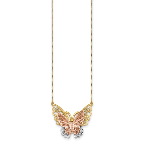 14k Yellow & Rose Gold w/ Rhodium Butterfly Necklace 18in
