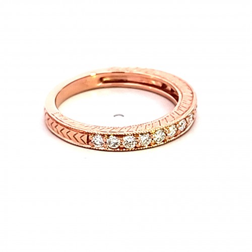 Exquisite 14K rose gold wedding band, featuring a band of .42 carat total weight of round brilliant cut diamonds of SI1 to SI2 clarity and H color. This elegant ring symbolizes everlasting love and commitment. A timeless piece, perfect for weddings, anniversaries, or as a sophisticated addition to any jewelry collection.