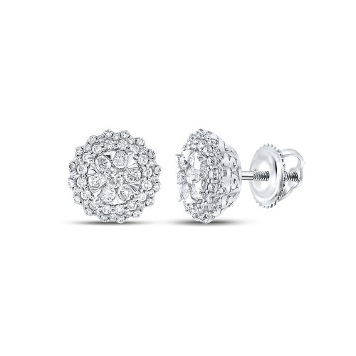 14kt White Gold Womens Round Diamond Fashion Cluster Earrings 1/2 Cttw 14K