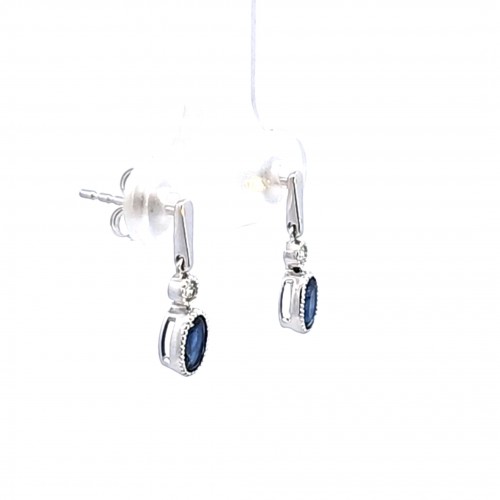 Discover the allure of these elegant 14K white gold sapphire drop earrings, designed to add a touch of sophistication to any outfit. The .60 carat total weight of deep blue sapphires are beautifully complemented by .05 carat total weight of sparkling diamond accents, making them perfect for both casual and formal occasions.
