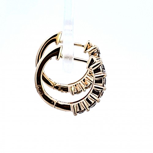 These 14K yellow gold hoop earrings are a perfect everyday pair. They contain a total of 1 carat diamonds, with each earring containing five full cut diamonds, making it the perfect pair to add a little sparkle to your everyday life.