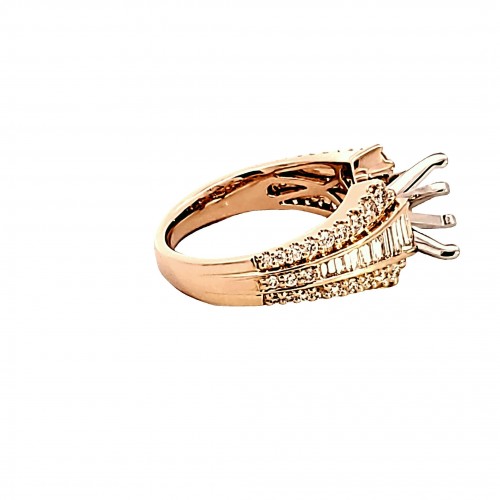 Discover the essence of grace with our 14K yellow gold Diamond Semi Mount Engagement Ring, a masterpiece crafted to captivate and charm at first glance. The combination of round and baguette diamonds are beautiful together. Select a diamond from our collection of loose diamonds to make this ring yours.