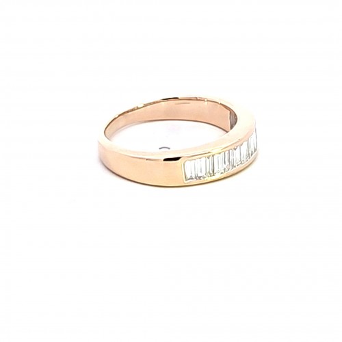Savor the elegance of this 14K yellow gold wedding band. The band features .50 carat total weight of baguette diamonds set across the band. This classic design is timeless.