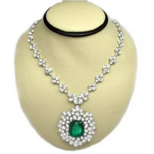 15 Ct Oval Cut Green Emerald With Natural Earth Mined Diamonds Bracelet