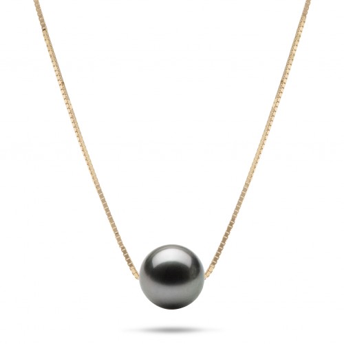 Classic and elegant, this necklace features a silky white Akoya pearl on a sleek adjustable box chain in 14k yellow gold.