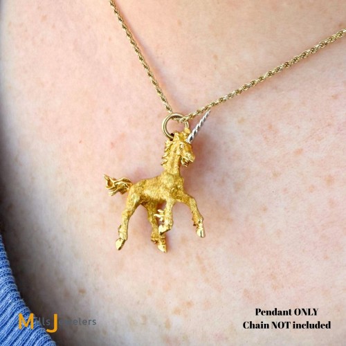 18K Yellow Gold and Platinum 0.01ctw Diamond Unicorn Slide Pendant