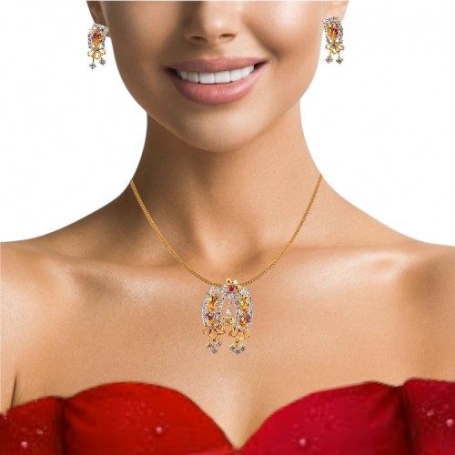 18K Yellow White Gold Pendant Earring Set with Natural Diamond & Multi Tourmaline Jewelry