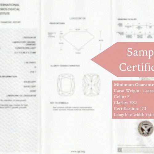 This listing reflects minimum guaranteed quality. The stone you receive will be the listed quality or better on all stats (carat weight, color, clarity, cut). Please contact us if you would like to see a certification for our current selection.