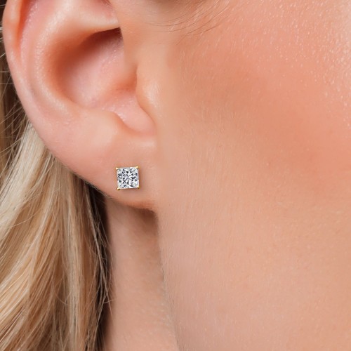 2.00 Ct Princess Cut 14K Yellow Gold IGI Certified Lab Grown Diamond Stud Earrings | E-F Color | VS1-VS2 Clarity | Gold Earrings For Women Men