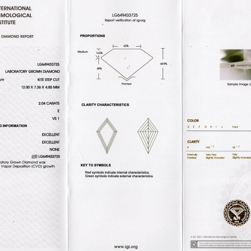 2.04ct KITE SHAPE LAB CREATED DIAMOND IGI CERTIFIED E VS1 GEOMETRIC LOOSE 2ct