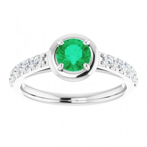2.25 Carats Green Emerald And Natural Earth Mined Diamond Ring White Gold 14K