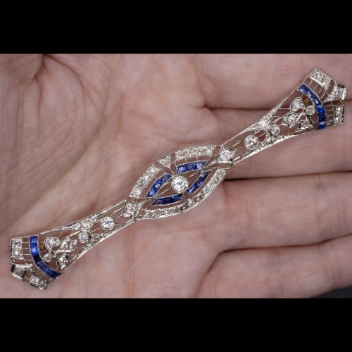 – Sapphires are synthetic as this was common practice during the Art Deco era