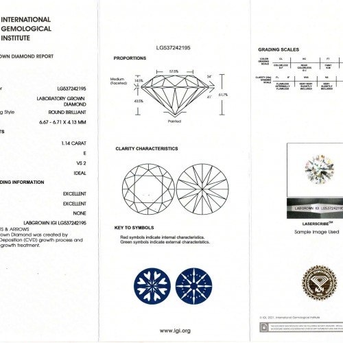This gorgeous 2.27ctw matched pair of certified lab grown round brilliant cut diamonds are bright white with exquisite clarity, and have dazzling sparkle and brilliance.