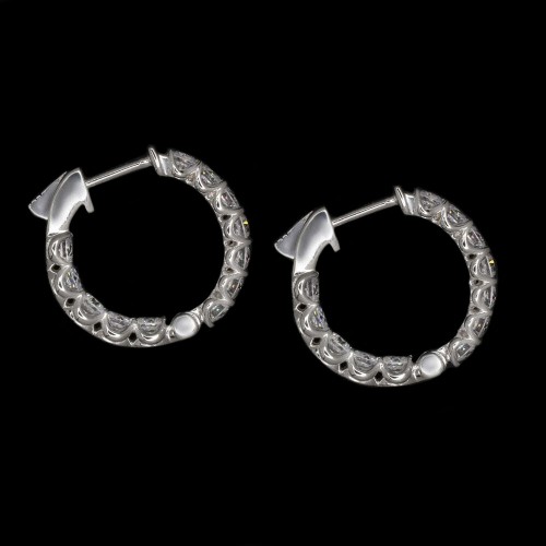 These stunning lab grown diamond huggie hoops have a classic design and vibrant, lively sparkle! Set with 2.57 carats of lively lab grown diamonds, these earrings display eye catching sparkle, and a striking look! The elegant in and out design allows for maximum sparkle from the front. These classic earrings are impressive and elegant enough for a special occasion, but simple enough for everyday wear.