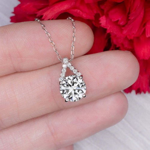 This lab diamond pendant offers brilliant sparkle and a chic, modern design.