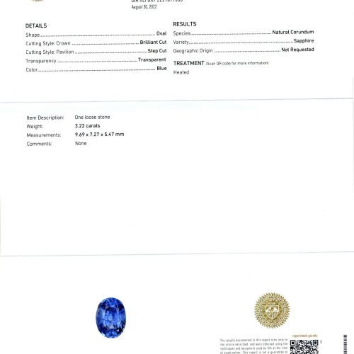 This gorgeous and substantial 3.22ct GIA certified sapphire has vibrant cornflower blue color and a stunning play of light! It is a brightly saturated and perfectly even classic Ceylon blue color that GIA classified simply as Blue. Beautifully transparent, the sapphire has a mesmerizing and particularly lively play of light. The elongated cut has a chic and flattering look on the finger. The sapphire was mined in Sri Lanka (Ceylon) as guaranteed from our direct source. Sri Lanka is known to produce sapphires of exceptional quality and is one of the most prized origins in the world for sapphires. The sapphire has been heated by international standards, as have the vast majority of sapphires. Heating is accepted to be the standard for almost all sapphires because it is stable and permanent. Strikingly beautiful, this stunning sapphire is sure to become an heirloom that will bring joy to your family for generations to come!