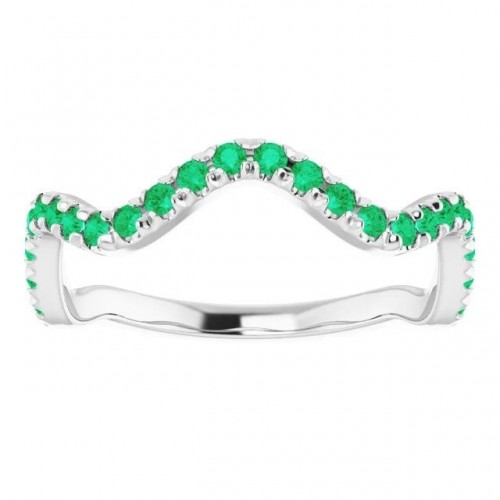 3 Carats Freeform Shank Ring Green Emerald Stones White Gold 14K
