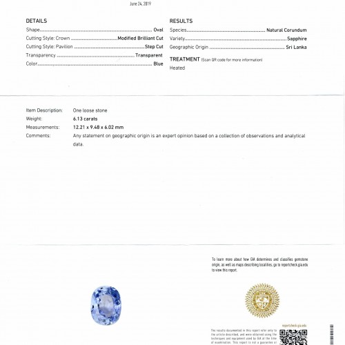 – Substantial 6.13ct size sapphire