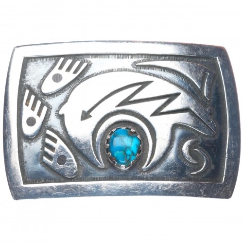 Floyd Namingha Lomakuyvaya Hopi Bisbee Turquoise sterling silver belt buckle