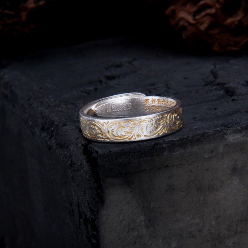 This exquisite 999 pure silver ring features a delicate honeysuckle pattern with the Heart Sutra intricately engraved. Combining spiritual significance with refined craftsmanship, it is a graceful accessory for those who appreciate meaningful and elegant jewelry.