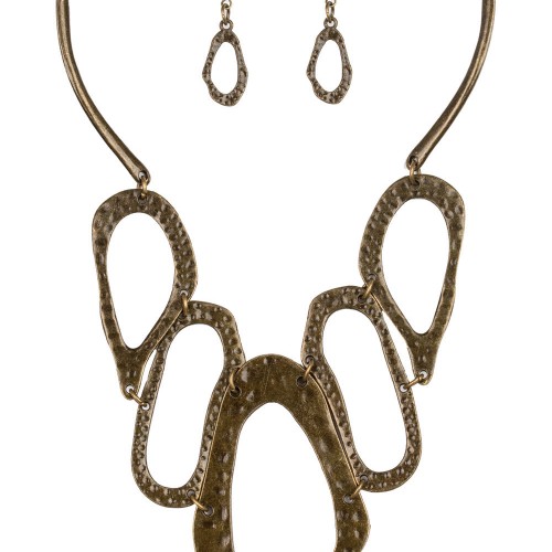 A mismatched collection of smooth and decorative brass and silver beads are threaded along a stretchy band around the wrist. An ornate brass charm dangles from the center for an eye-catching finish.