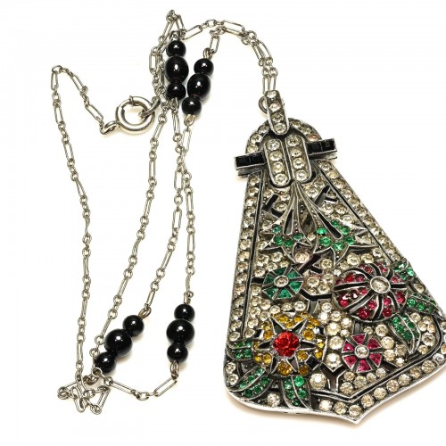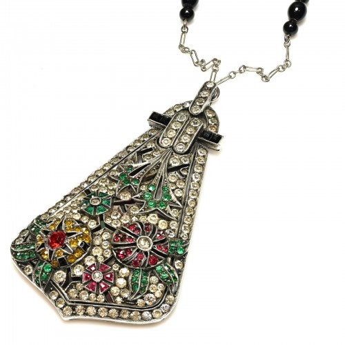 This striking Alan Anderson choker necklace commands attention with its bold, wide design adorned in radiant pink crystals. Each crystal catches the light brilliantly, creating a captivating shimmer that beautifully complements the necklace’s substantial silhouette. Perfectly balancing contemporary flair with vintage-inspired glamour, this choker adds a vibrant pop of color and luxe sparkle to any outfit, making it an unforgettable statement piece for both day and evening wear. Length adjustable from 13″-19″.
