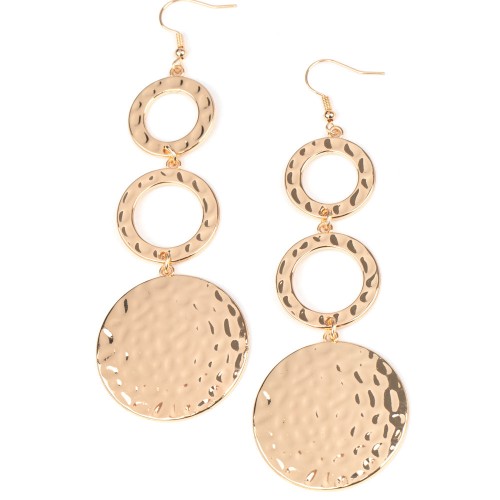 Glistening gold frames curl around a beveled gold disc, creating an edgy frame. Features a stretchy band for a flexible fit.