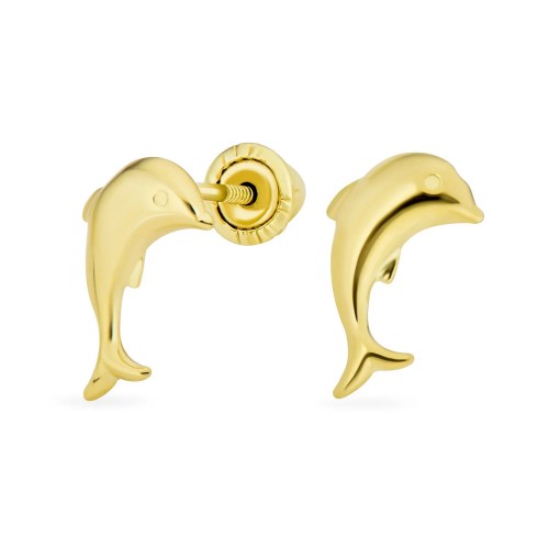 Tiny Minimalist 14K Gold Dolphins Cartilage Ear Stud Earrings Safety Screw Back