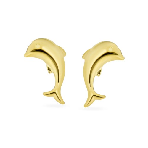 Tiny Minimalist 14K Gold Dolphins Cartilage Ear Stud Earrings Safety Screw Back