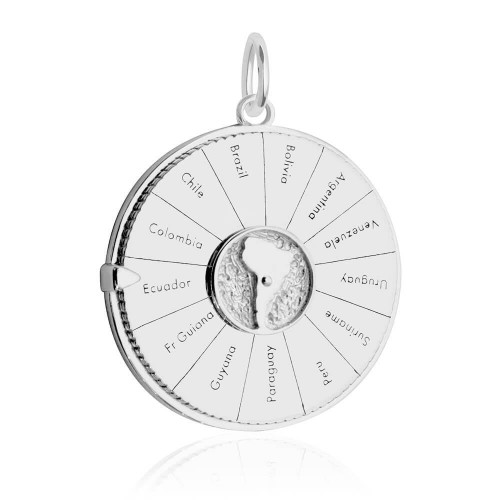 You’re about to take your next statement piece for a spin. Literally. Explore the globe with a lot of style and a dash of whimsy with a charm that makes the layover just as fun as the trip itself. An engraved Antarctica silhouette is centered on a small sterling silver disk within a larger, rigged wheel of possible destinations within this great unknown: Lesser Antarctica and Greater Antarctica. Spin and see where the arrow lands and where your next adventure begins.