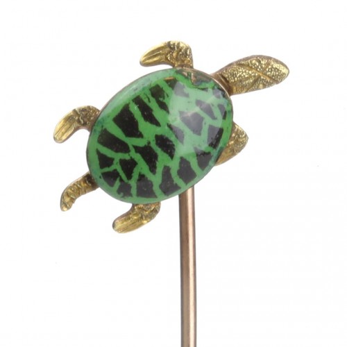 Delight in the craftsmanship of the antique 1879 inlaid gold woven stick pin.