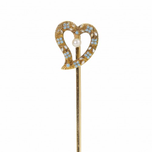 Antique 18K Gold Freshwater Pearl Diamond Stick Pin