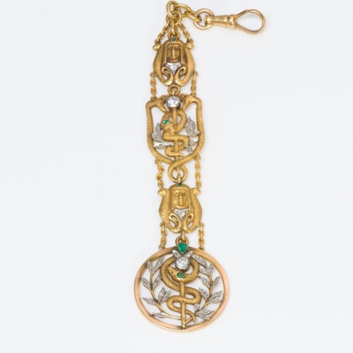 Art Nouveau Diamond Gold Enamel Watch Fob.