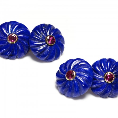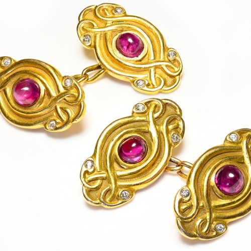 Art Nouveau Gold Cufflinks Featuring Cabochon Rubies
