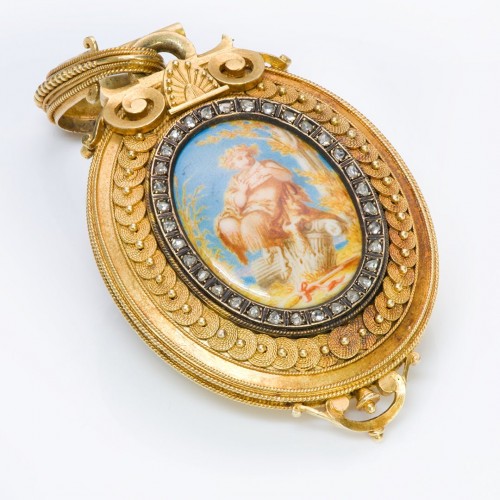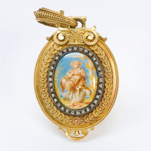 Antique 18K Gold Enamel Diamond Pendant Locket Attributed to Eugène Fontenay