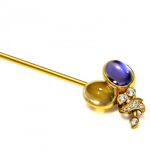 Austrian Gold Stick Pin with Sapphire, Diamond & Citrine