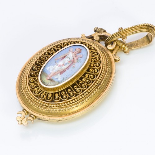 Antique Etruscan Revival Gold Enamel Locket Pendant Attrib. to Eugène Fontenay
