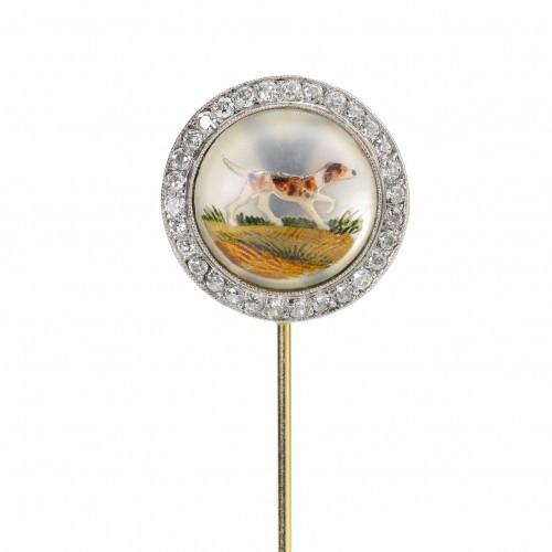 The 18K gold setting adds a touch of opulence, ensuring that the pin stands out as a distinguished piece in any antique jewelry collection.