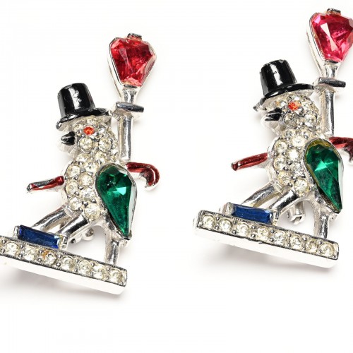 Antique French 18K Gold Silver Scenic Agate Diamond Cufflinks
