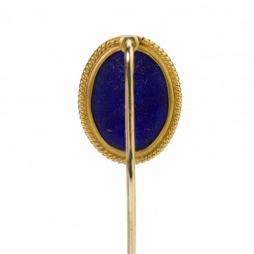 This antique gold cabochon lapis stick pin showcases the deep, captivating blue of lapis lazuli, set against the warm gleam of gold.