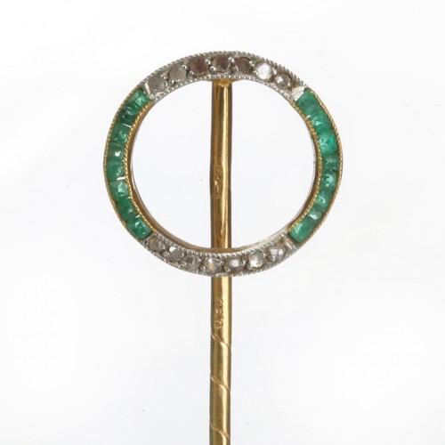 Antique Gold Calibre Sapphire Diamond Circular Stick Pin
