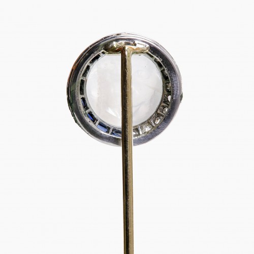 Antique Gold Carved Moonstone Calibre Sapphire Diamond Stick Pin