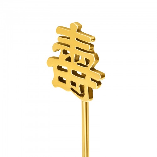 A refined antique stick pin featuring the Chinese character “壽” (Shòu), symbolizing longevity and well-being. Expertly crafted in solid 14K yellow gold, this elegant piece beautifully blends cultural heritage with classic design—perfect for collectors and admirers of meaningful jewelry.
