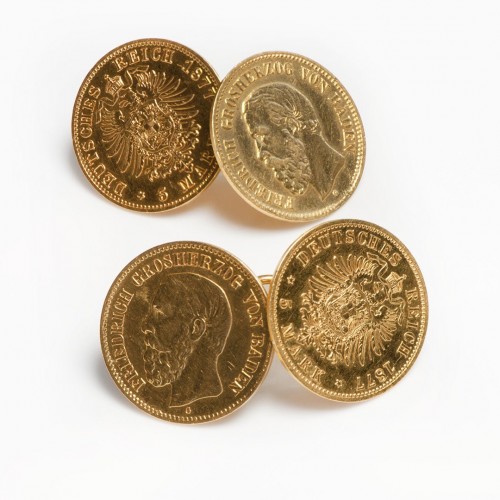 These antique cufflinks showcase the timeless beauty of gold and the historical charm of coins, creating a sophisticated accessory steeped in heritage.
