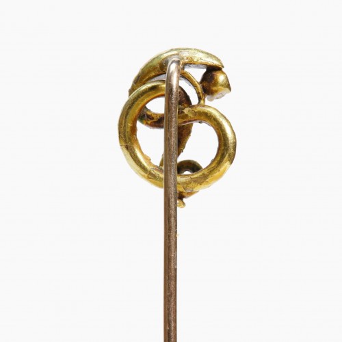 The antique gold diamond coiled snake stick pin is a striking piece that combines intricate design with refined elegance.