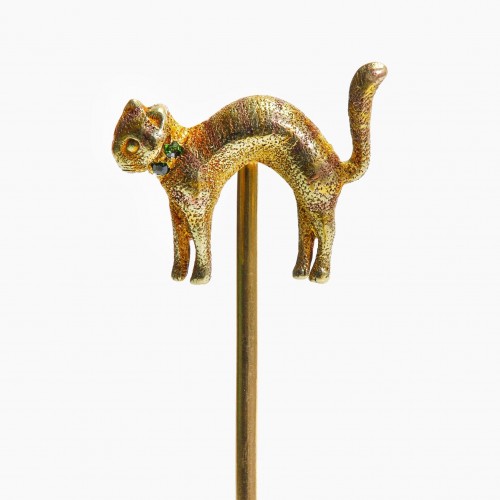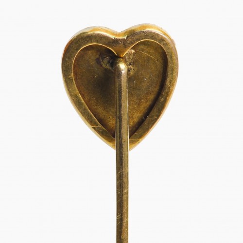 Celebrate timeless romance with our antique gold diamond heart stick pin.