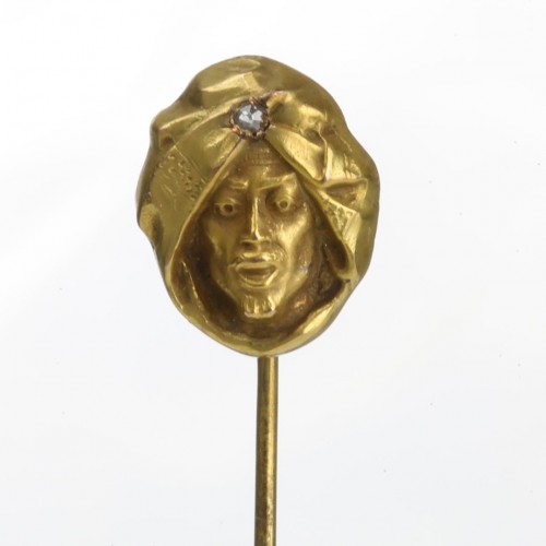 The antique gold diamond Napoleon figural stick pin is a regal piece that exudes historical charm and elegance.